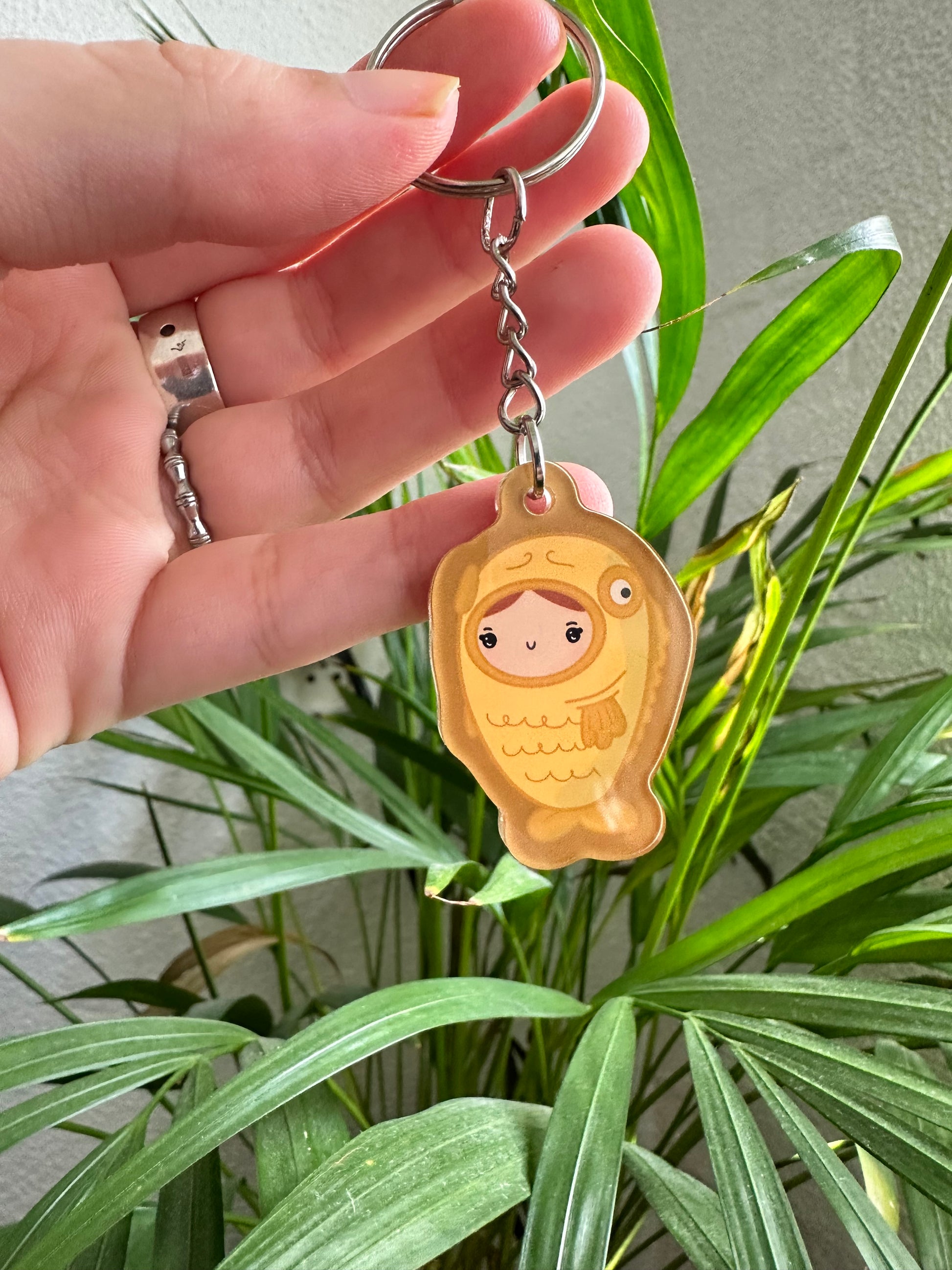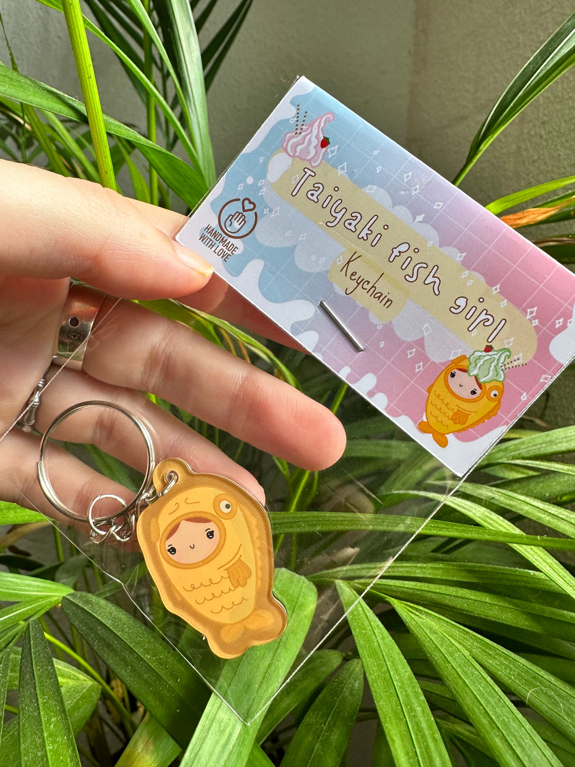 Bring a dash of charm and cultural flair to your everyday essentials with the Taiyaki Fish Girl Keychain! Featuring an adorable girl paired with the iconic taiyaki fish-shaped pastry, this accessory is a delightful nod to Japanese sweets and kawaii culture.